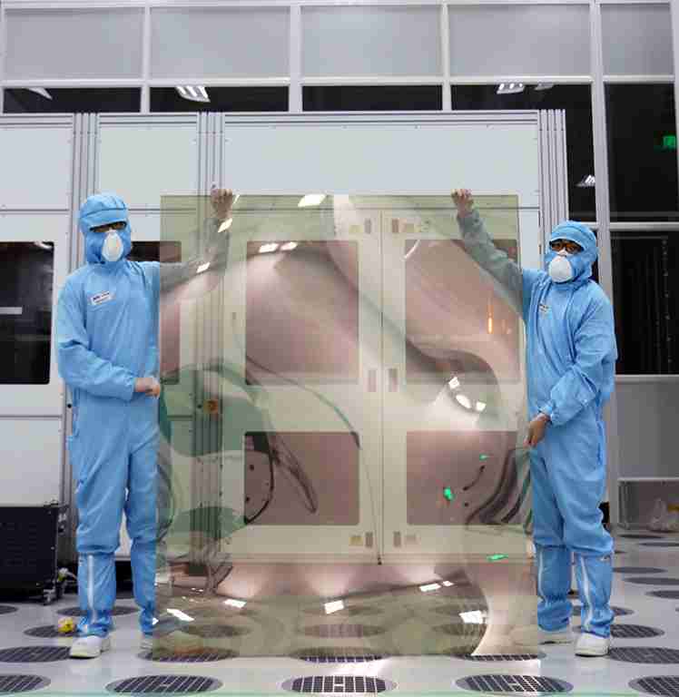 欧陆注册昆山厂第六代 LTPS (低温多晶硅) 生产的玻璃基板尺寸为 1500x1850 mm (毫米)