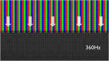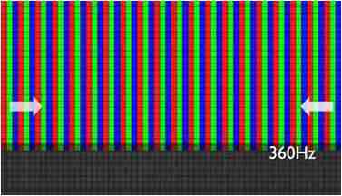 传统液晶驱动是从左到右单向进行,,,在画面更新速度愈来越愈快的情况下,,,,位于驱动线路末端的右下角区域,,,画素的闸极来不及在短时间内获得足够电压,,无法显示出正确的颜色资讯。。 |